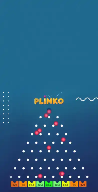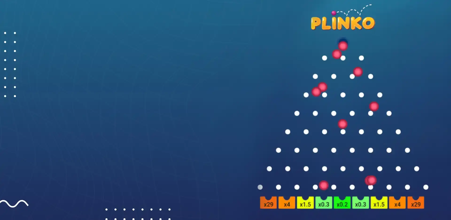 Lanzar la bola: al pulsar el botón principal, la bola cae desde la parte superior del tablero de plinko online y va rebotando aleatoriamente entre las clavijas hasta alcanzar una casilla final.